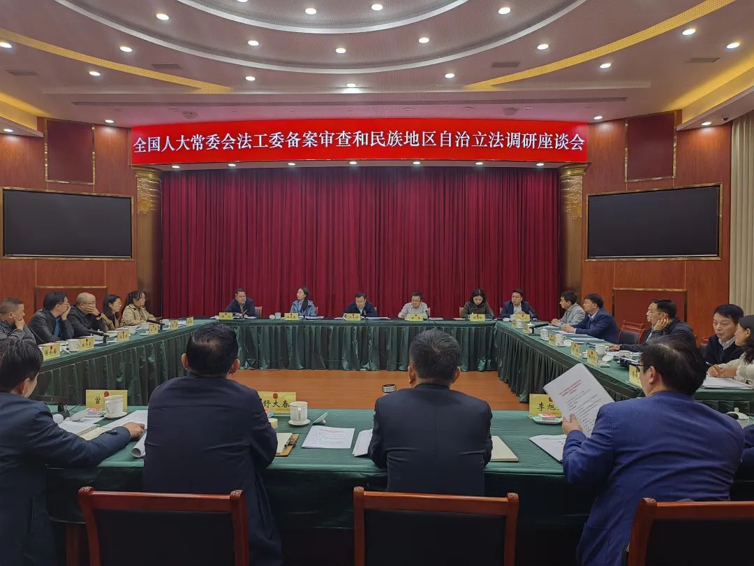 州人大常委会党组书记、主任舒大春陪同调研并主持座谈会,省人大常委会法工委副主任杨阖随行调研。州人大常委会副主任曾关和陪同调研并在座谈会上汇报我州备案审查工作开展情况;州政府副州长、州公安局局长钟科参加座谈并代表州政府汇报工作。
