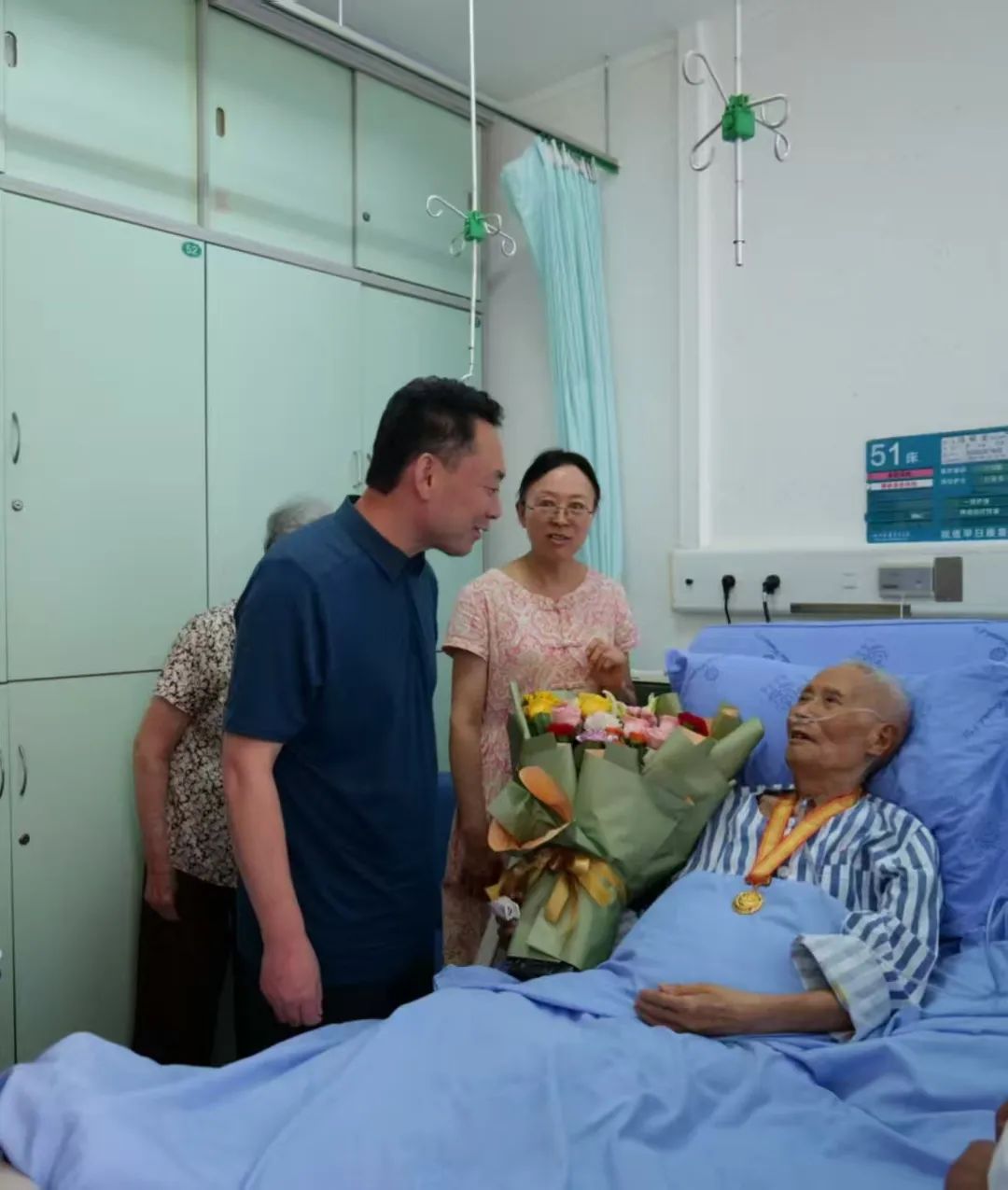 沈阳看望慰问抗战老战士冯祥定并为他佩戴“中国人民抗日战争胜利80周年”纪念章