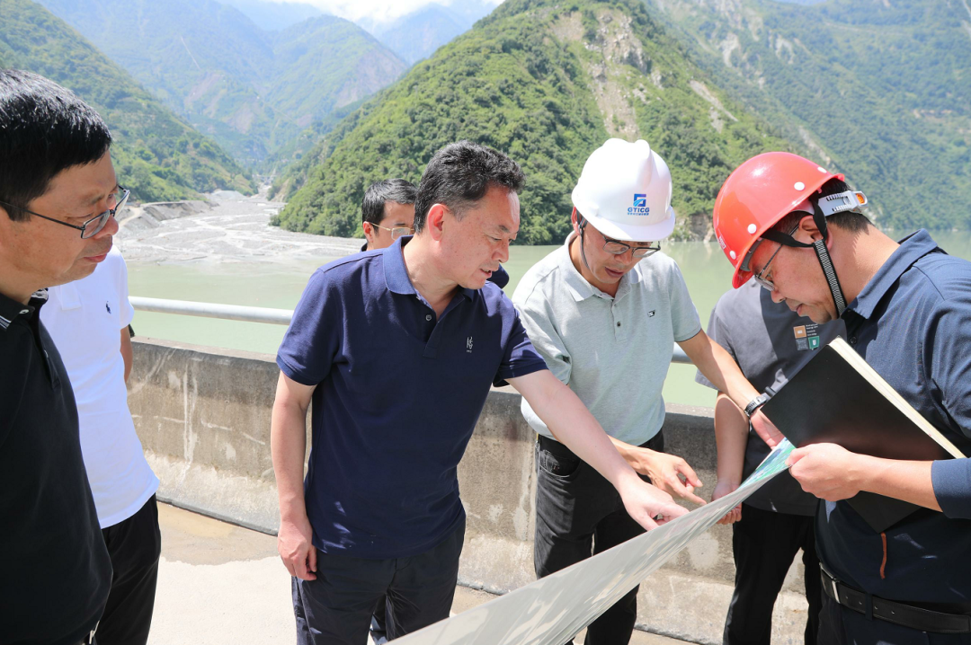 在泸定县湾东大桥处调研国道G662项目概况