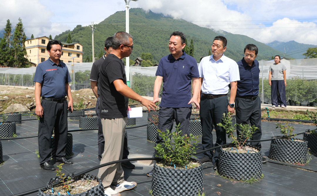 在海螺沟燕子沟镇新兴村蓝莓基地调研特色产业发展情况