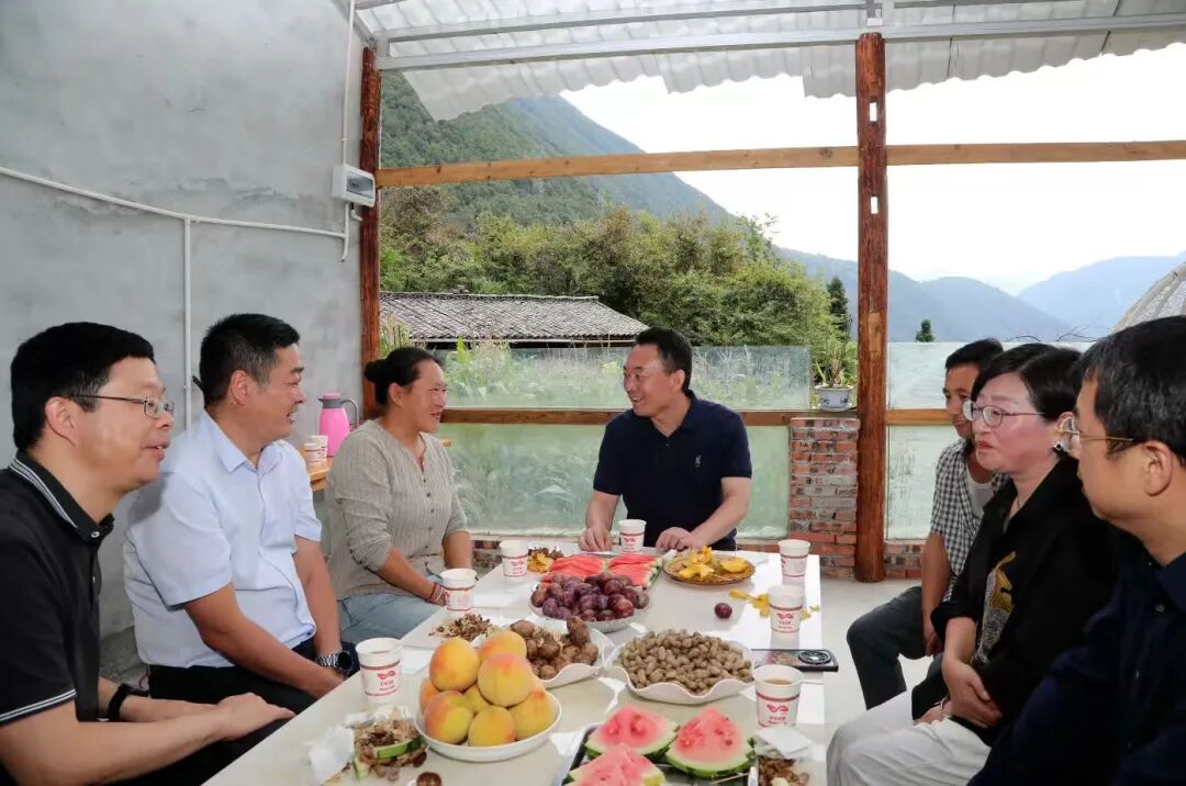 泸定县得妥镇北头村困难群众甘宜顺和磨西镇磨岗岭村困难群众任启蓉因“9·5”泸定地震,导致原住房损毁、无法居住,在当地党委、政府的关心帮助下,他们依靠自己勤劳的双手,已经完成住房重建,搬进了宽敞明亮的新家。沈阳来到他们家中,与大家围坐一起,详细了解大家生产生活情况,鼓励他们要通过发展乡村旅游和特色种植业,不断拓宽收入来源,把日子过得更加红火。