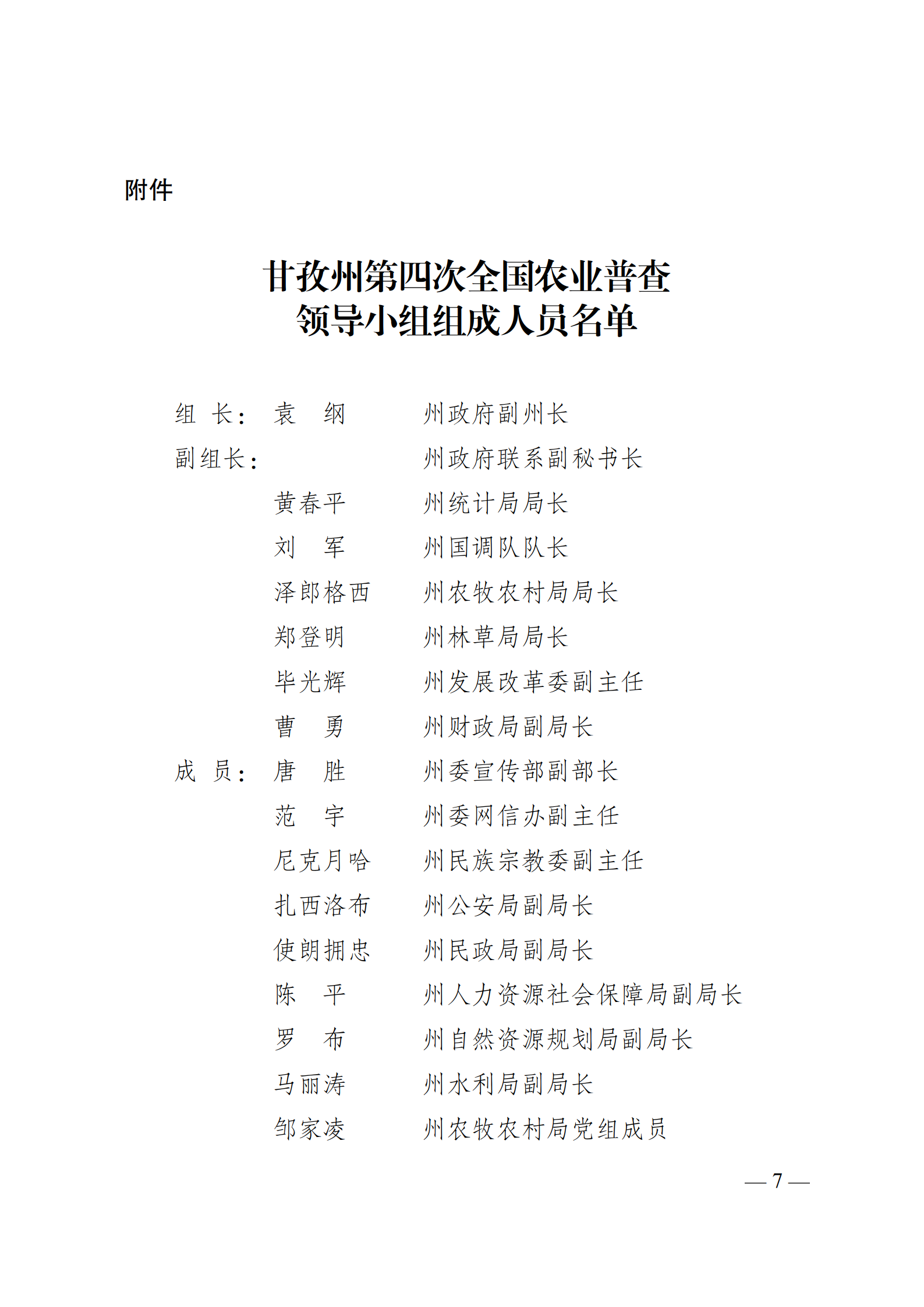 附件:甘孜州第四次全国农业普查领导小组组成人员名单